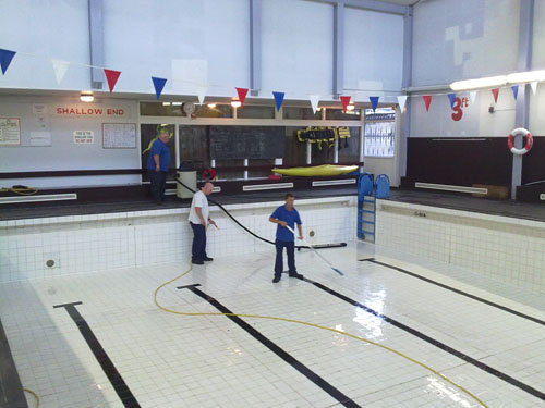 Due to vandalised glazing above the swimming pool area of a Northwest based college, Valleystar undertook the environmental clean of the swimming pool and lecture theatre areas to remove all residues of glass particles and debris.